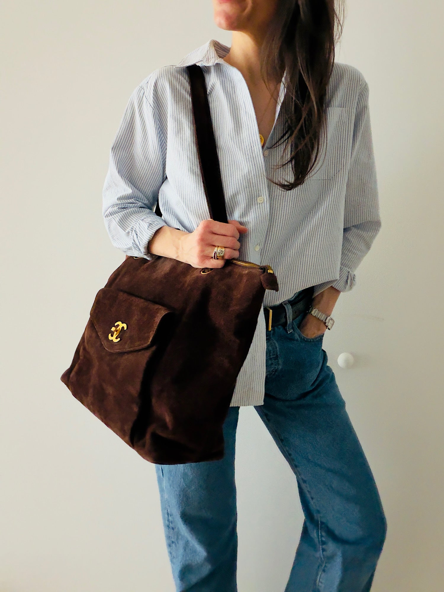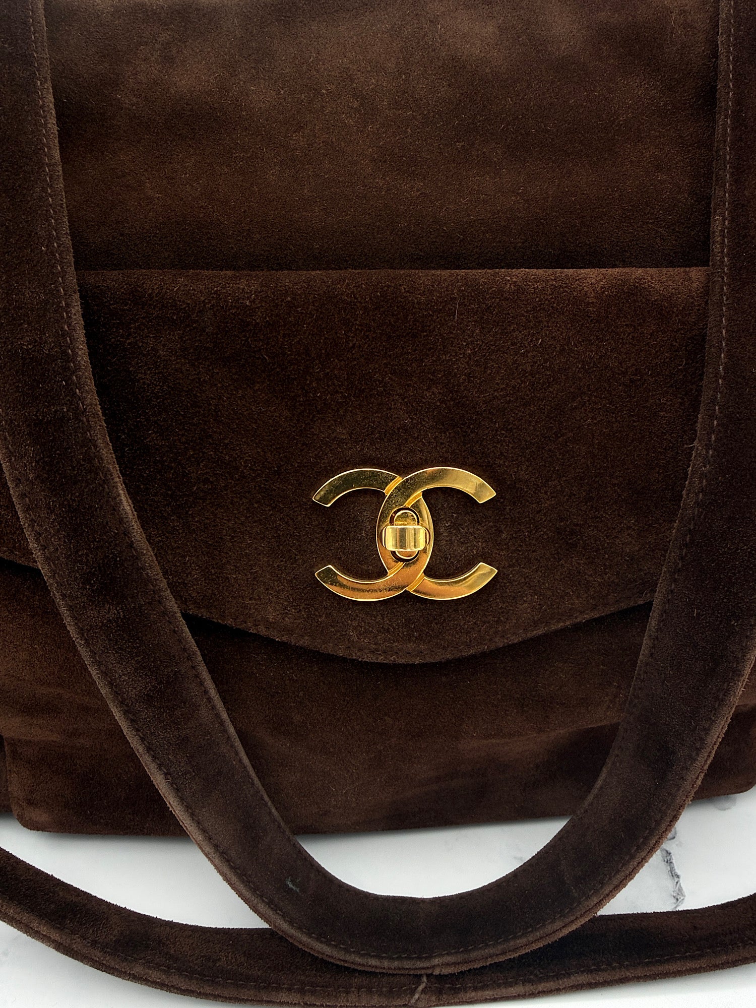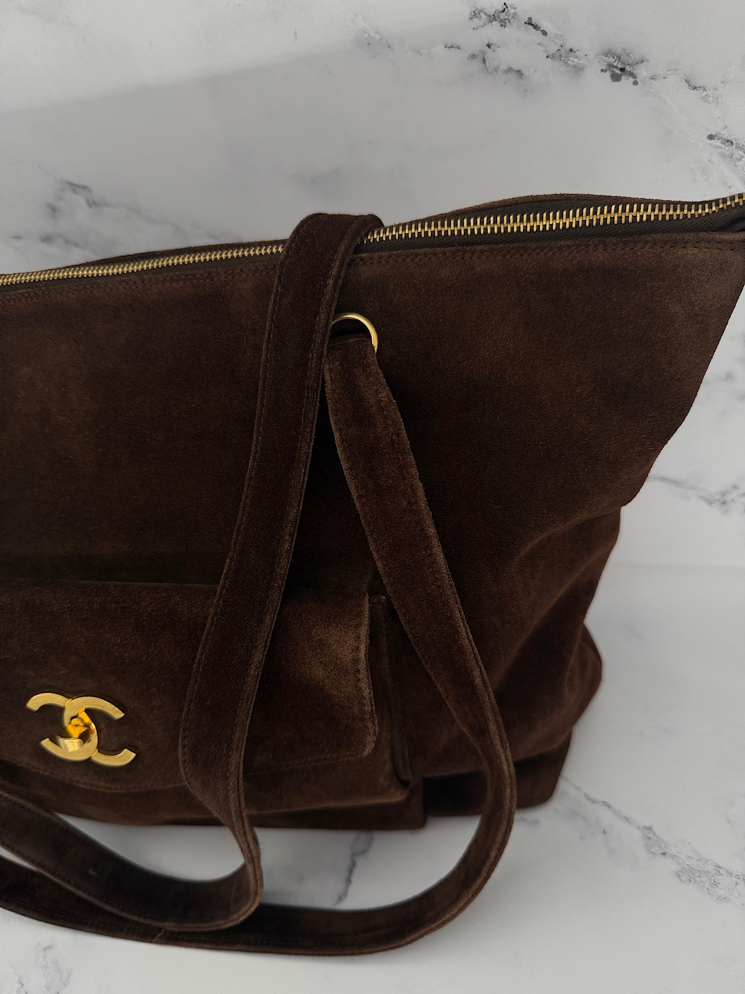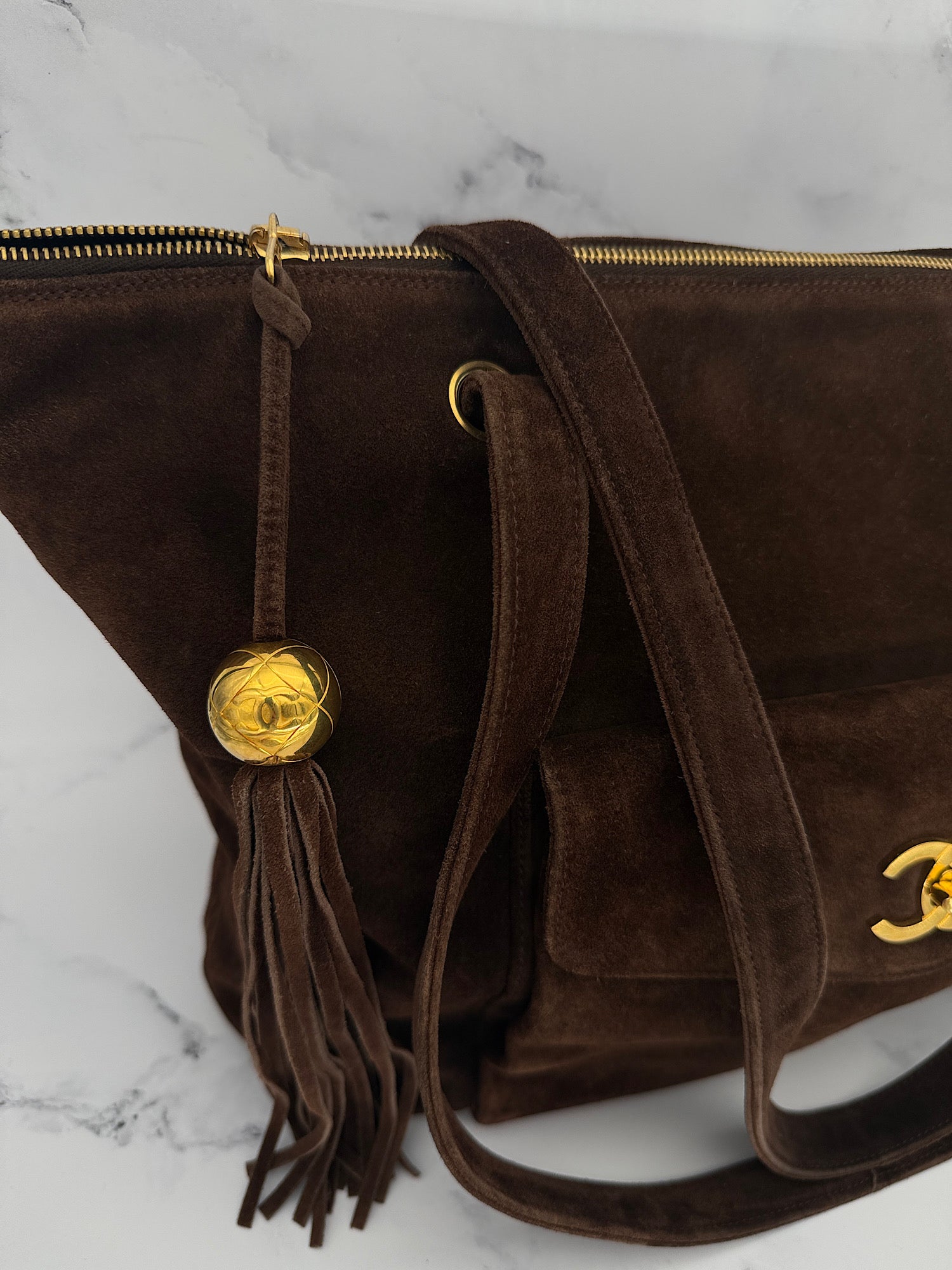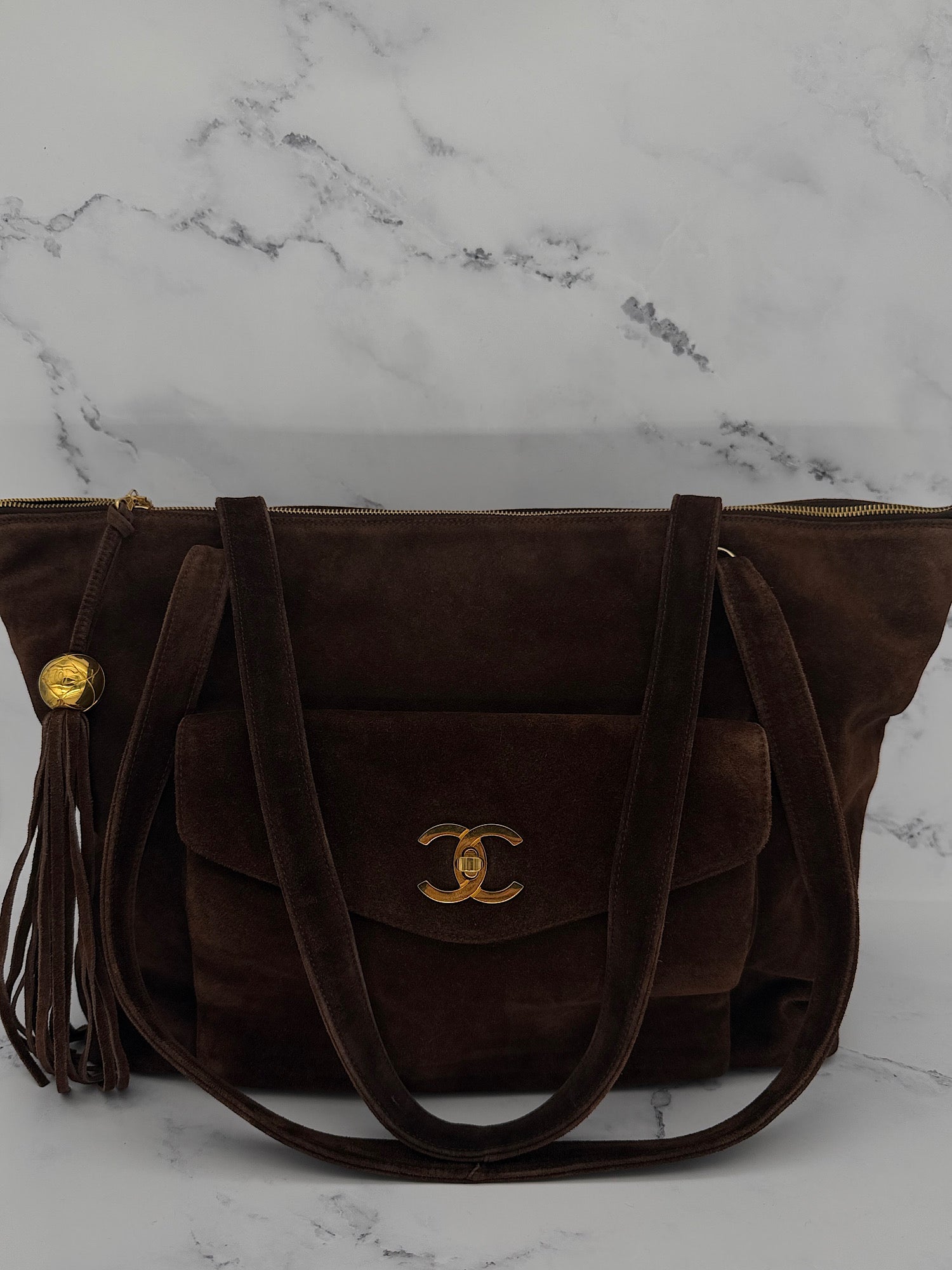 Chanel Chocolate Suede Tote Bag, with Entrupy