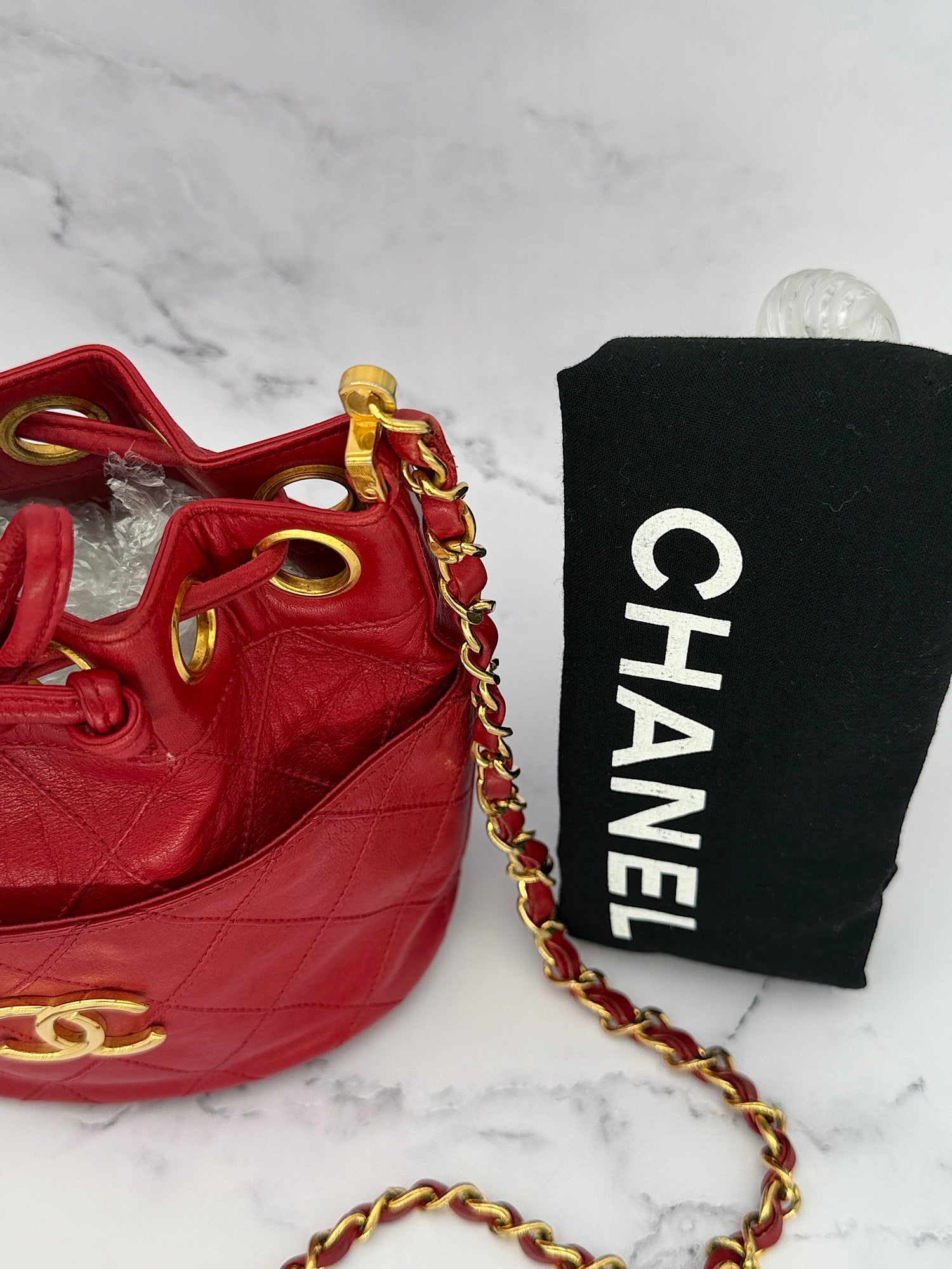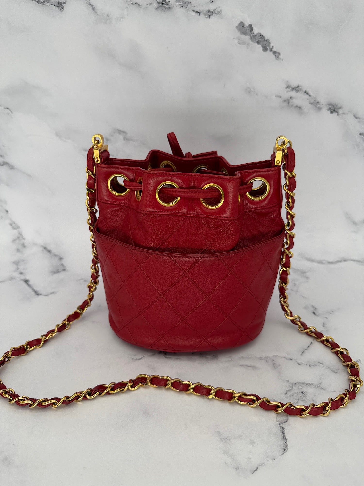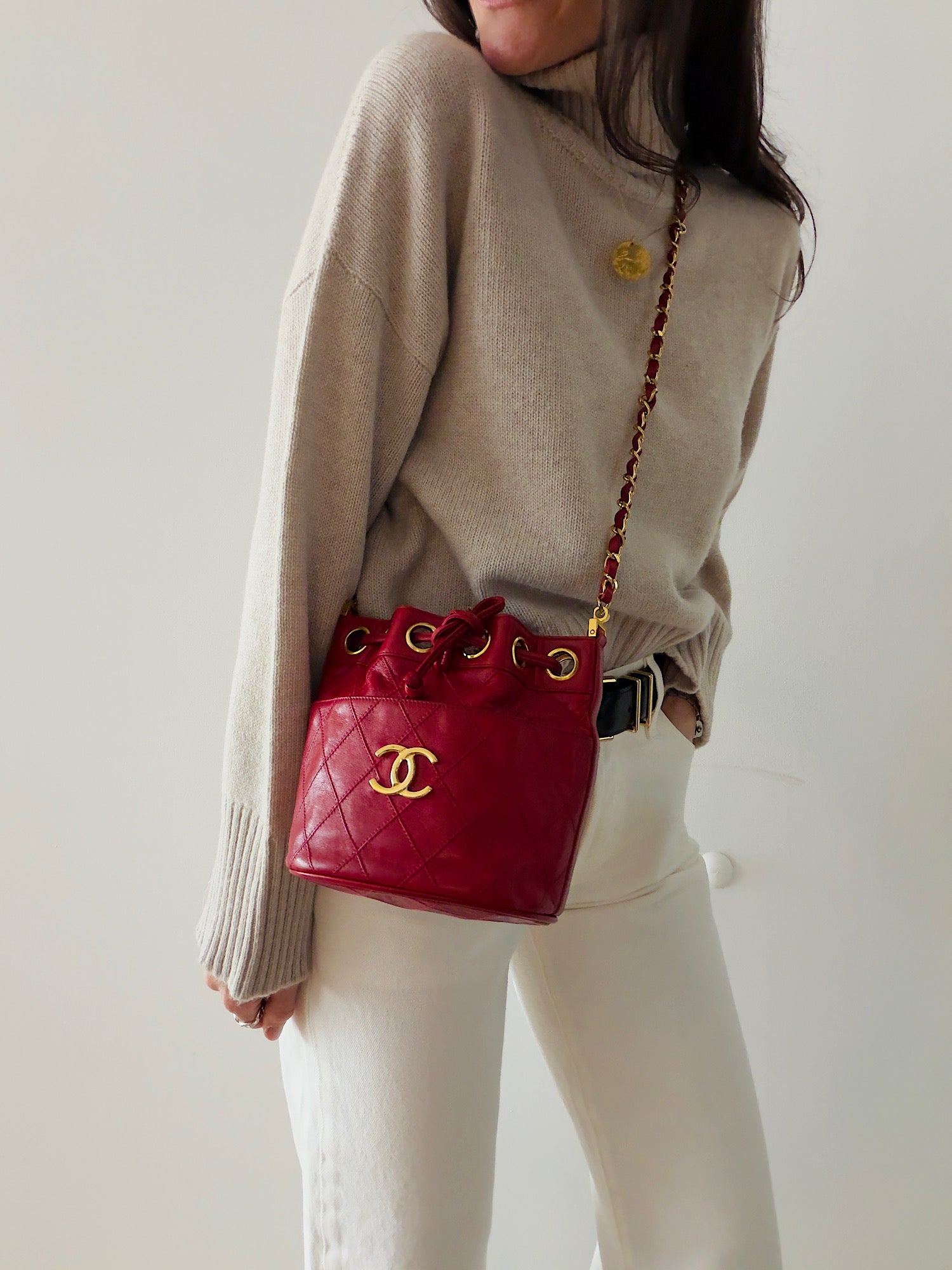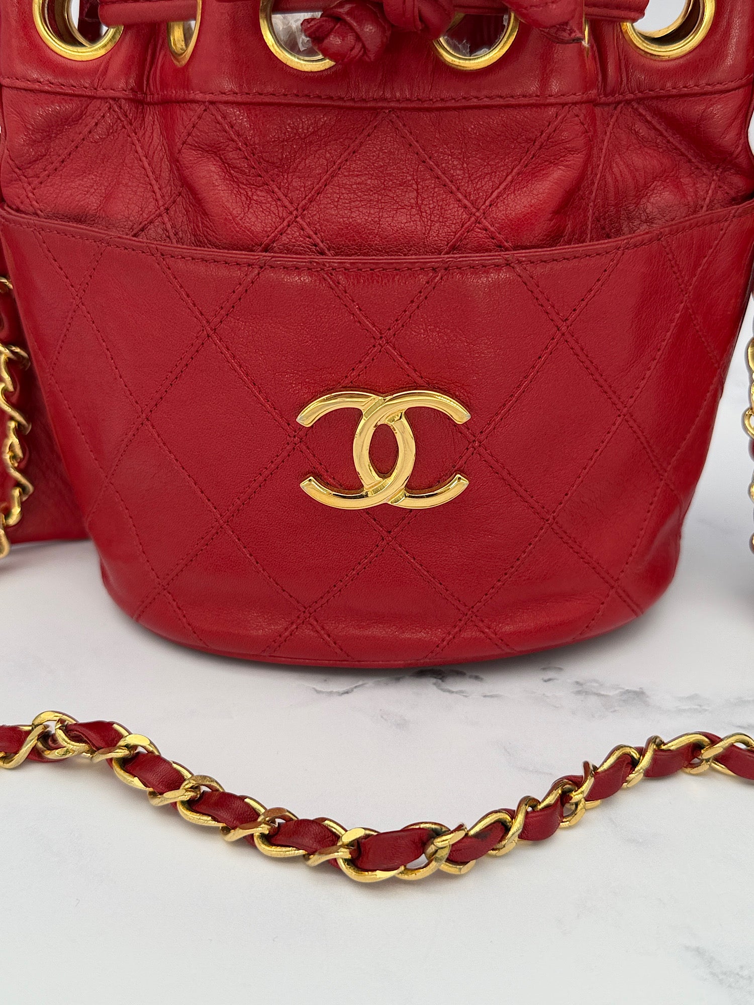 Rare Chanel Mini Gabrielle Bucket Bag in Red