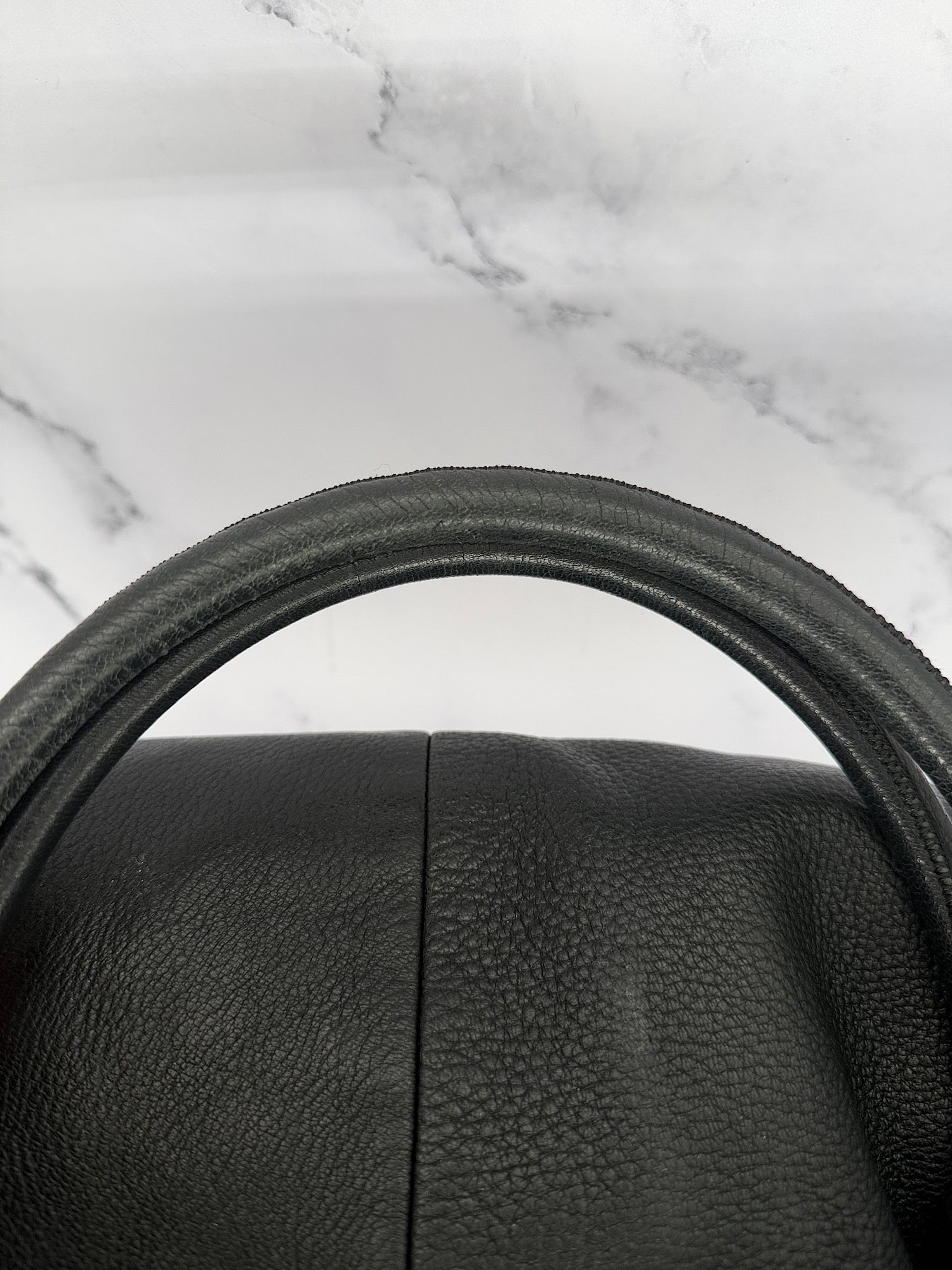 • Outside: very good conditions, the leather is still incredibly supple. Some wear and color correction on the corners (small). Light peeling on one of the handles (see closeup image).