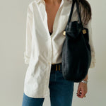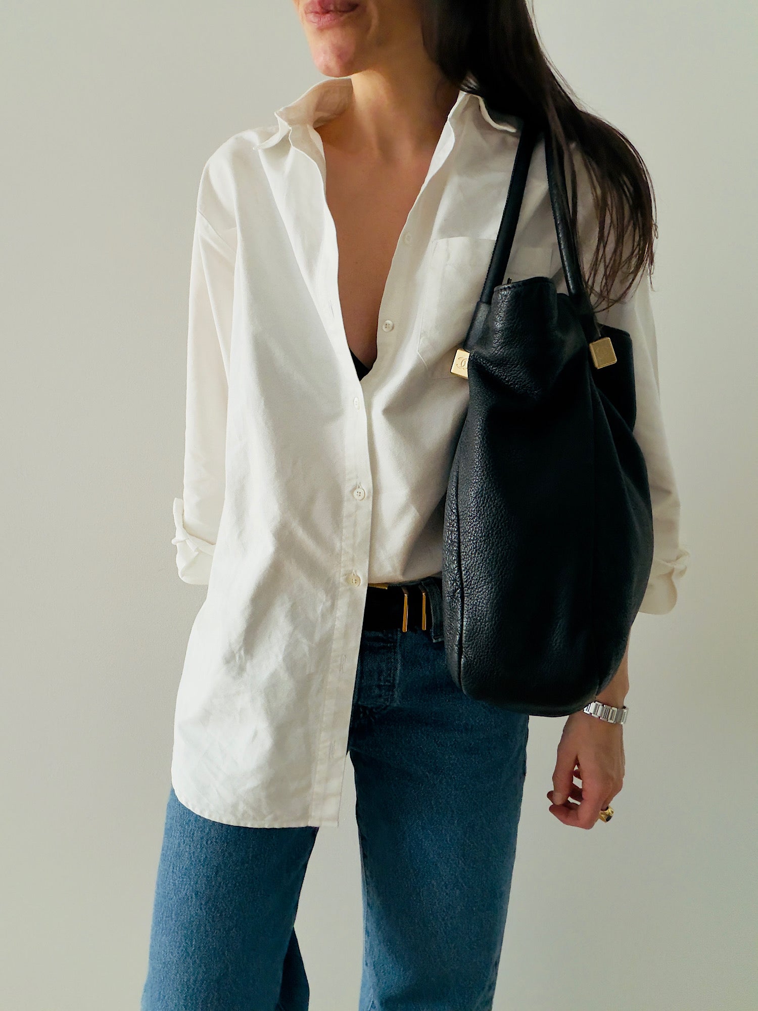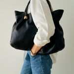 • Rolled leather shoulder straps
