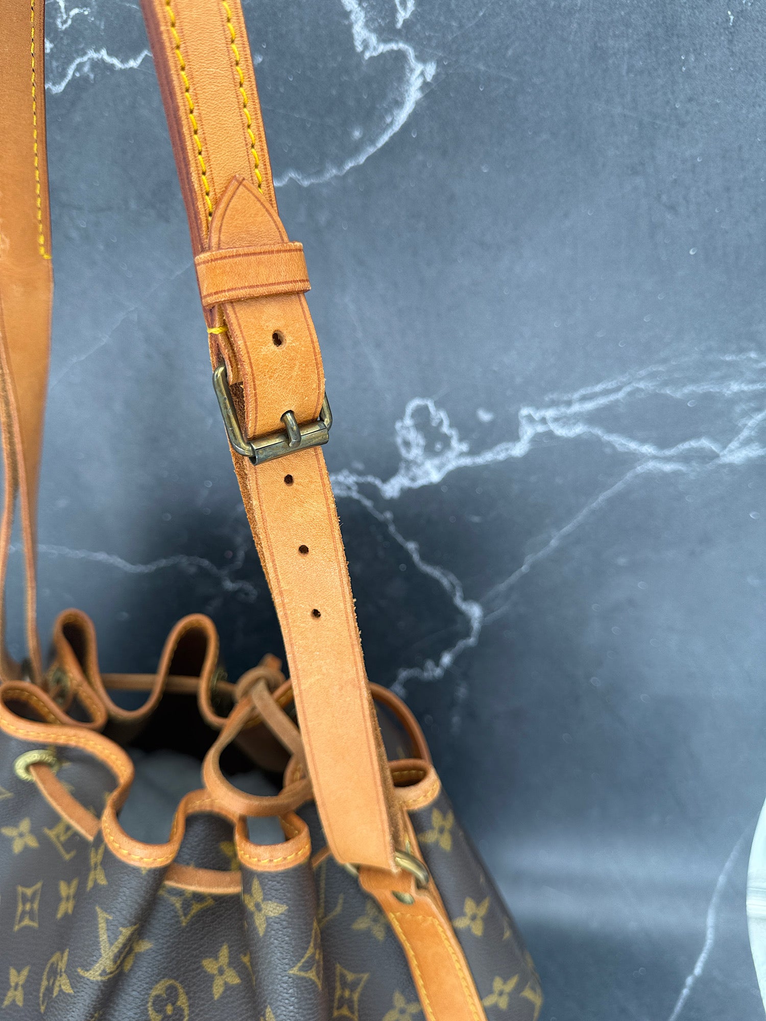 • Outside: very good conditions, the monogram print is still very crisp and clear. The vacchetta took a nice honey color.
