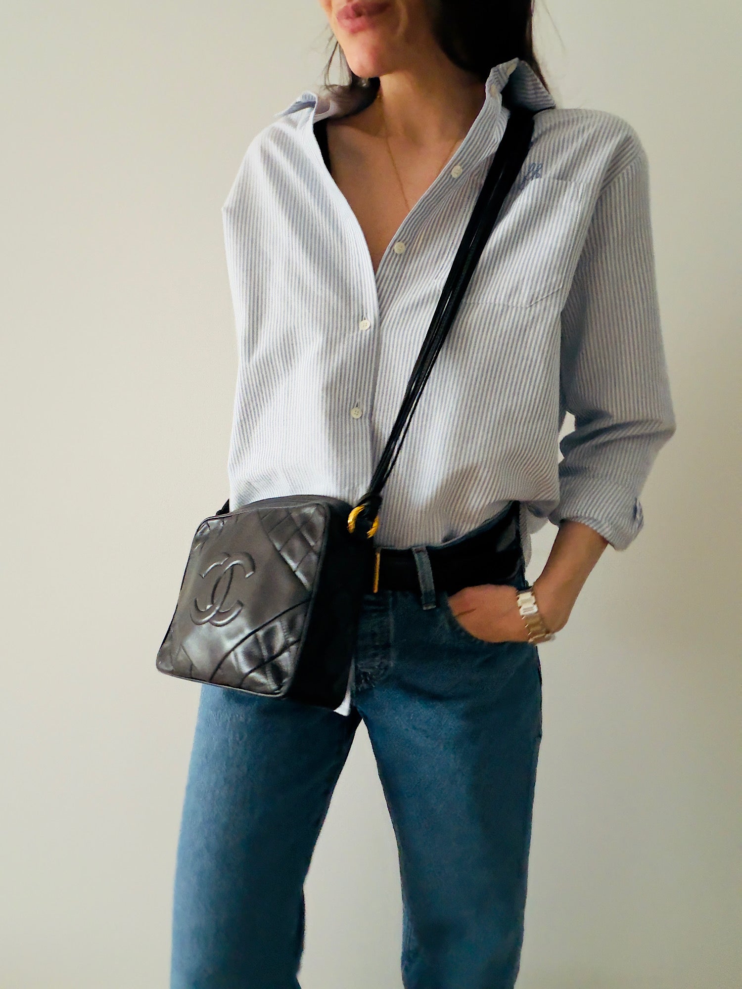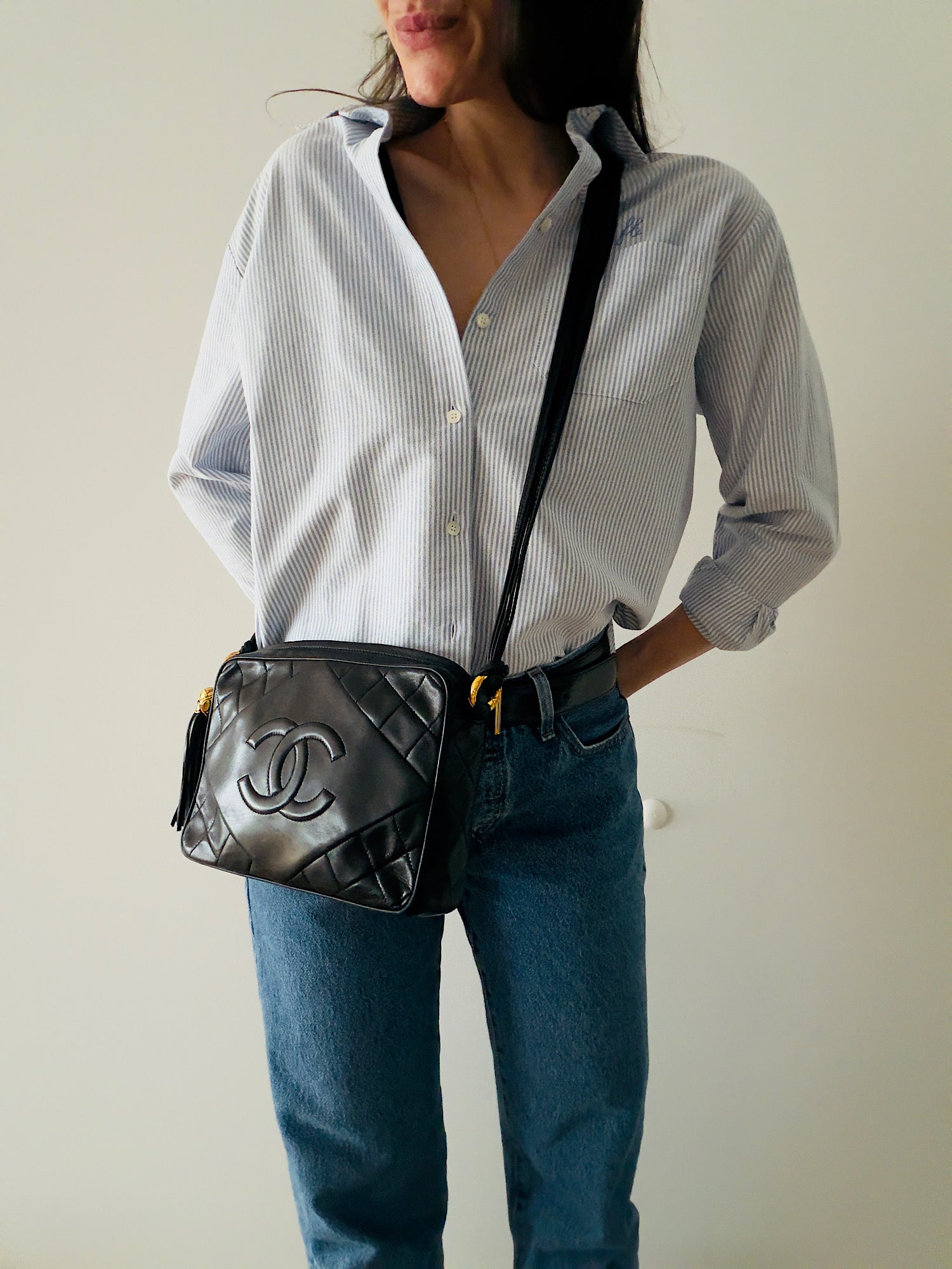 Chanel Black Logo Camera Bag