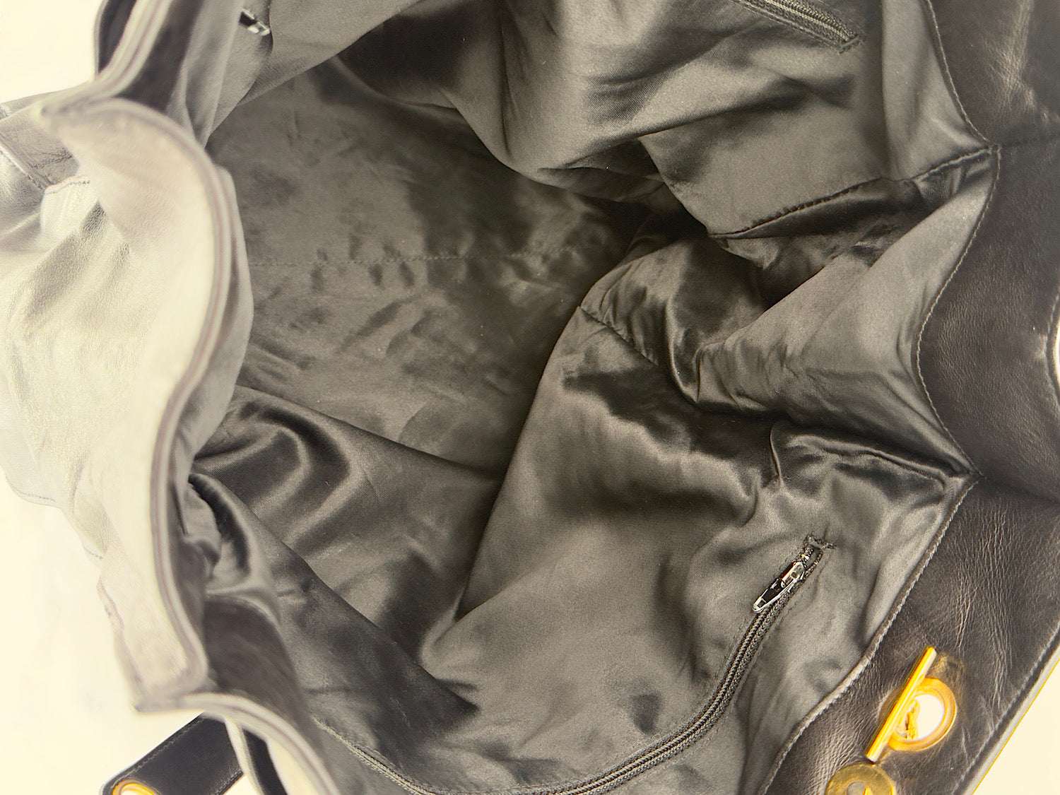 • Outside: good conditions, light wear close to the opening and at the base. Butter-soft leather. Scuffs on corners. Small defect at the base , close to one of the corners (as in the pictures, hardly visible).