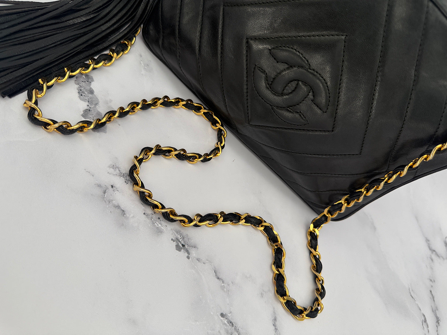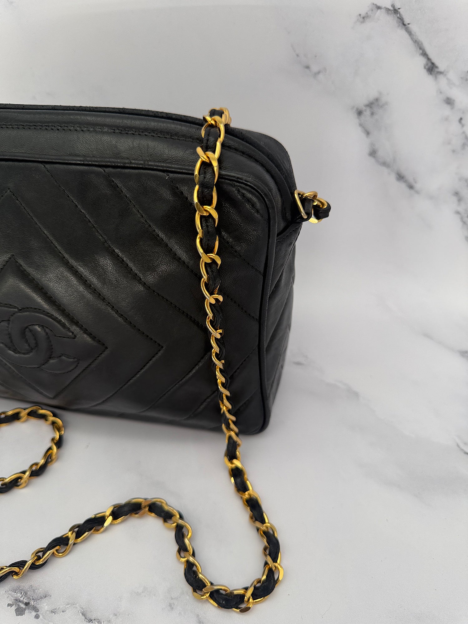 • Hardware: very good conditions, still golden and shiny. Wear and color correction on the shoulder strap. Light patina on leather.