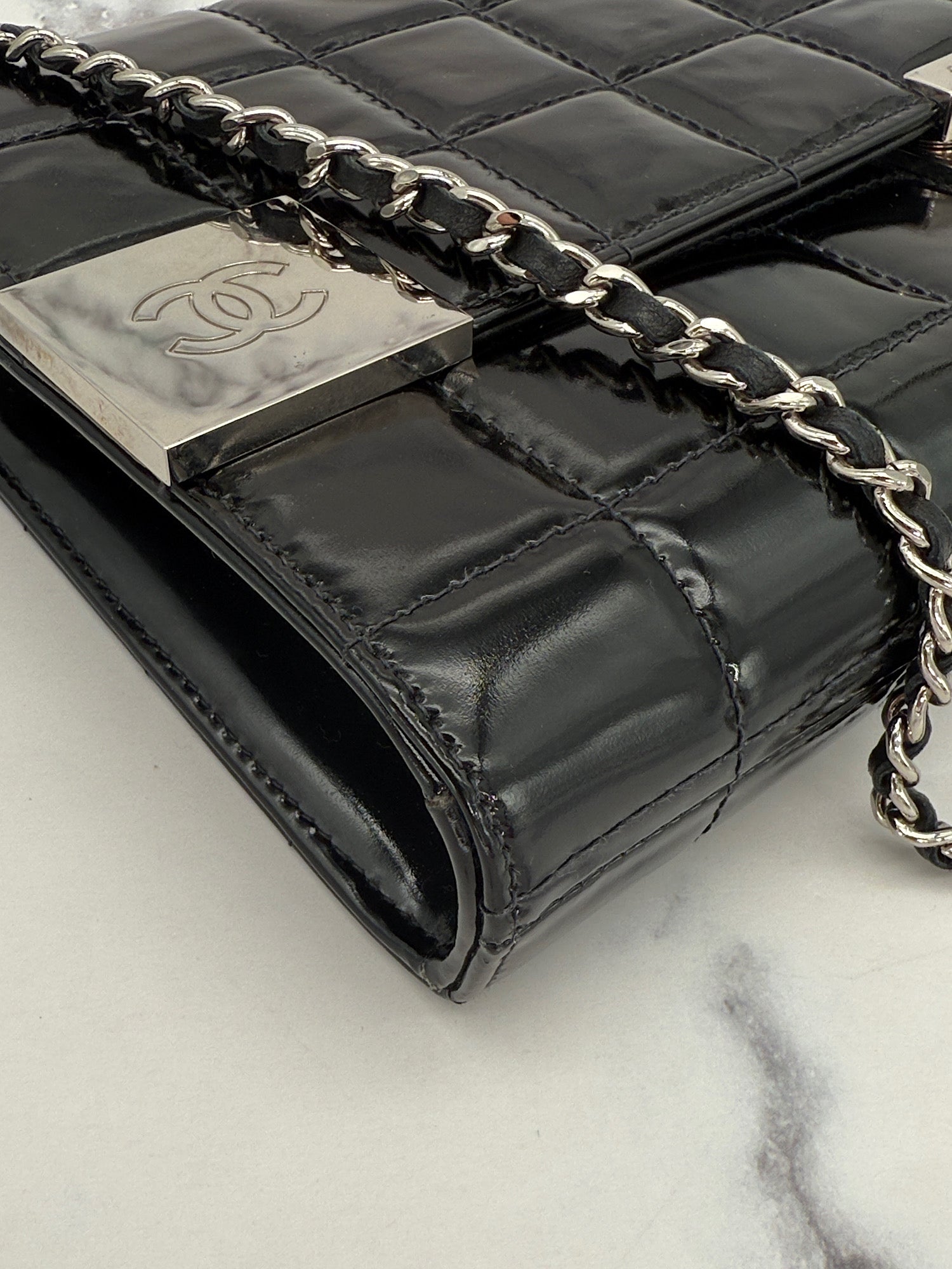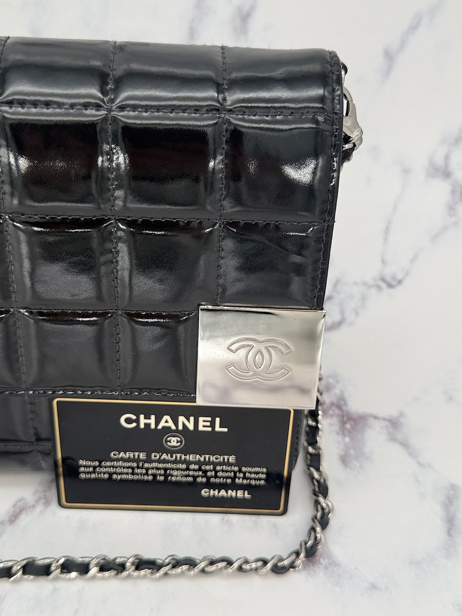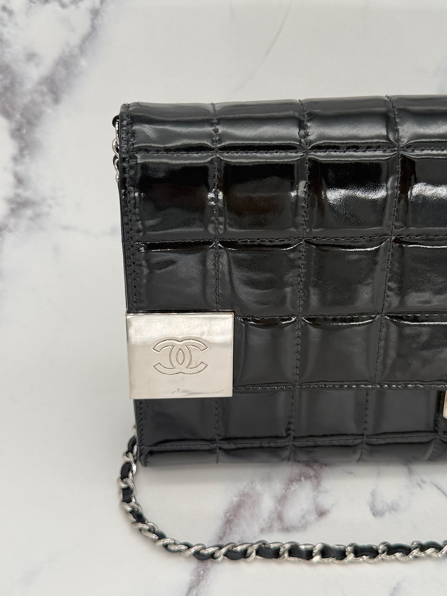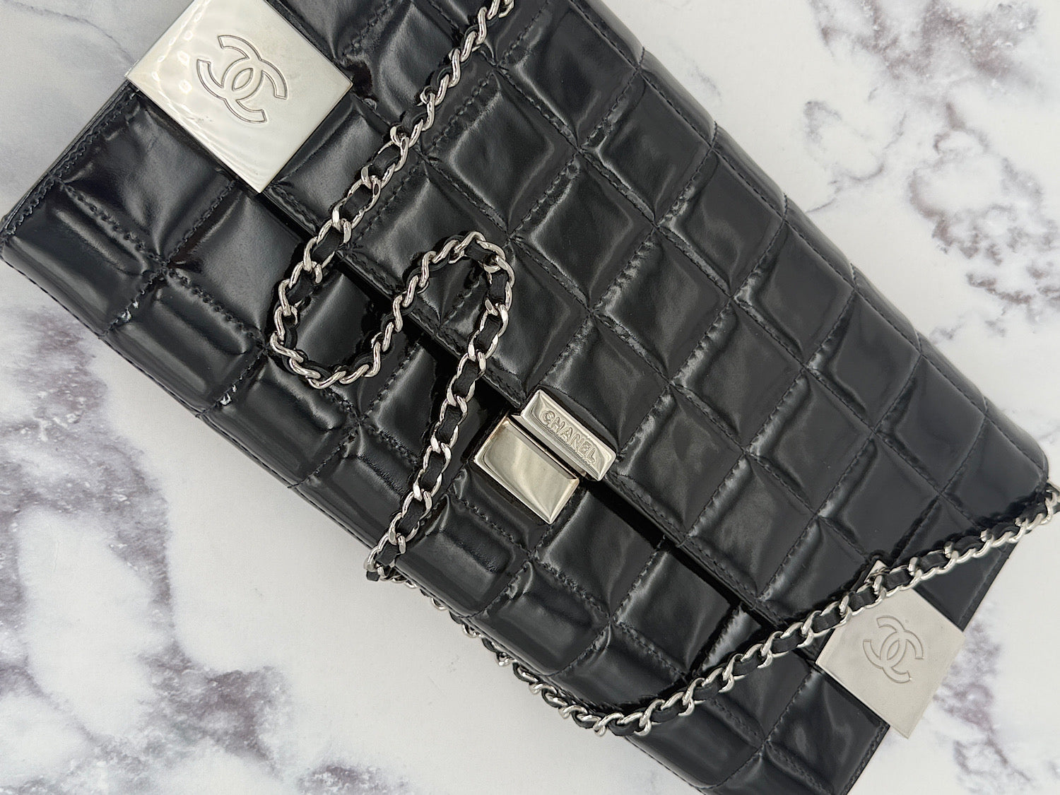 Chanel Patent Choco Bar with Dual Logo