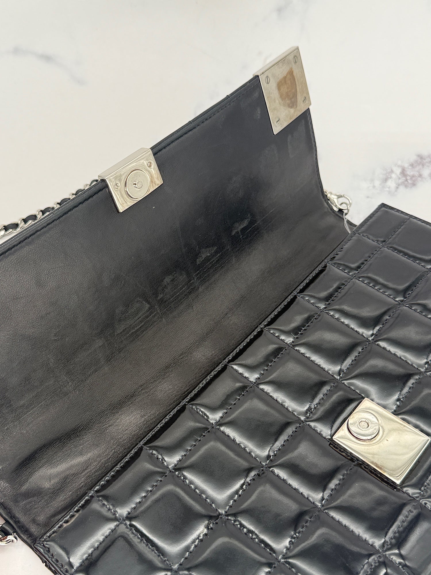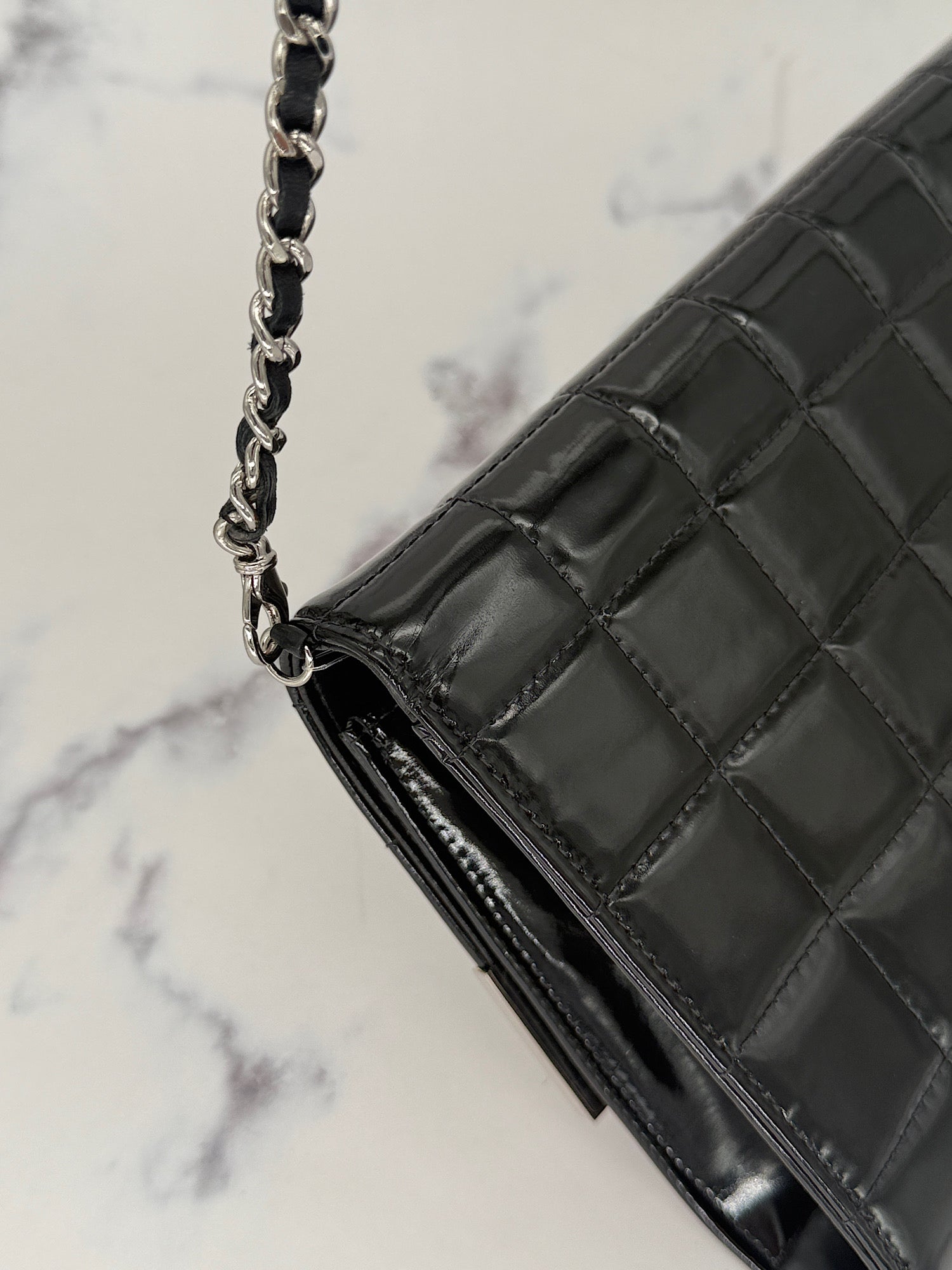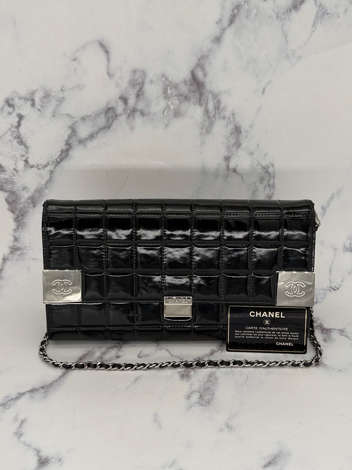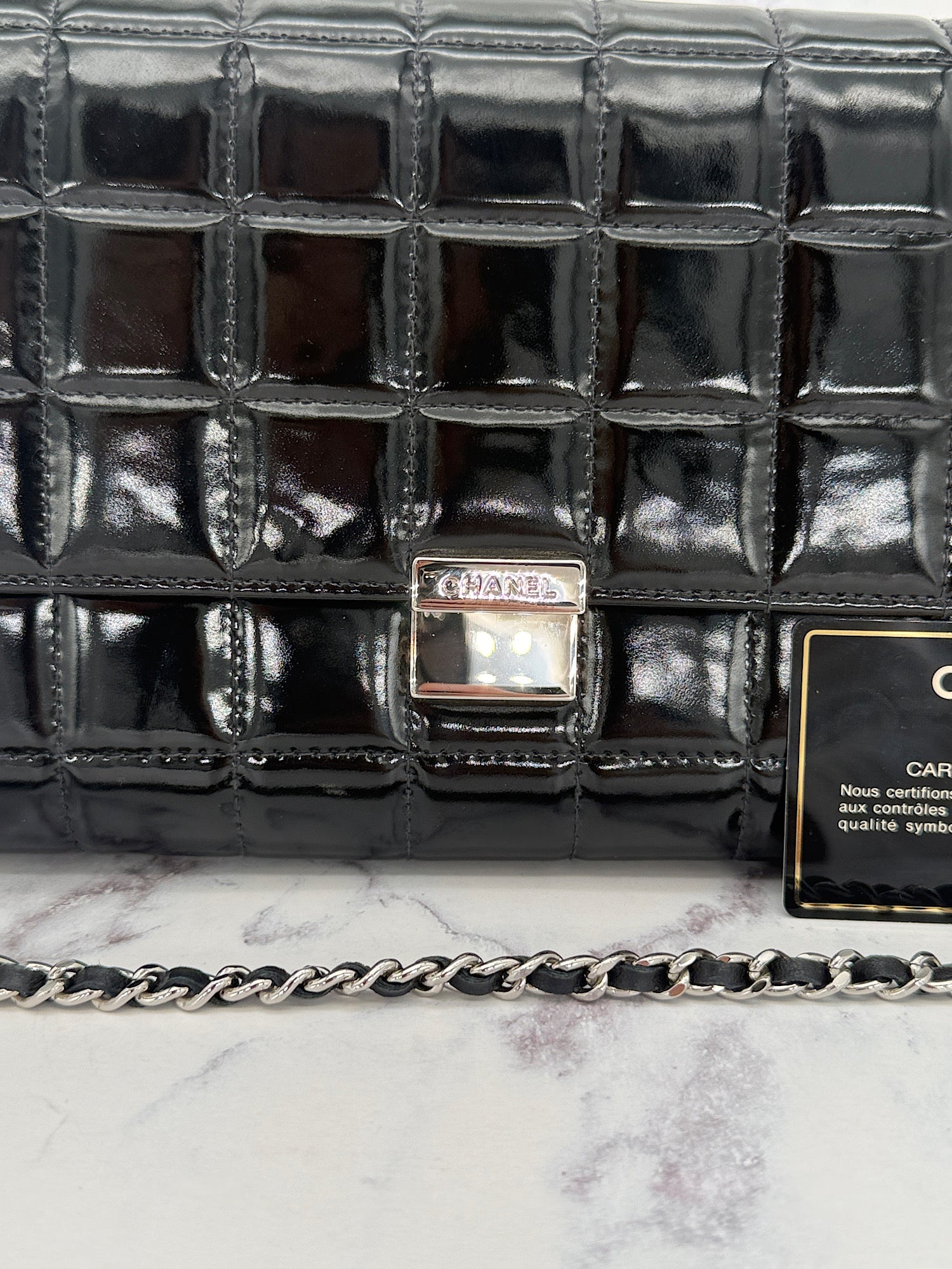 Chanel Patent Choco Bar with Dual Logo