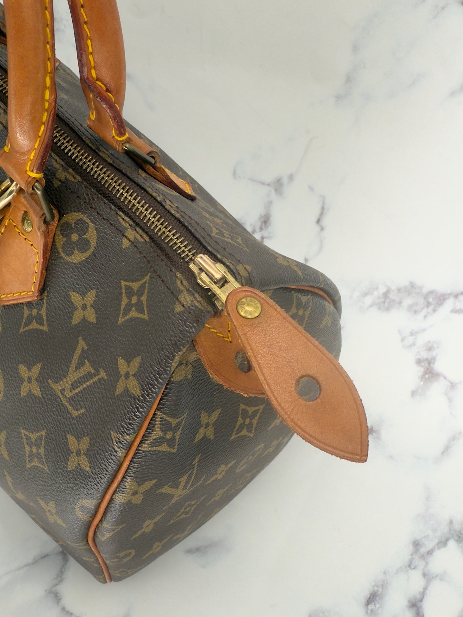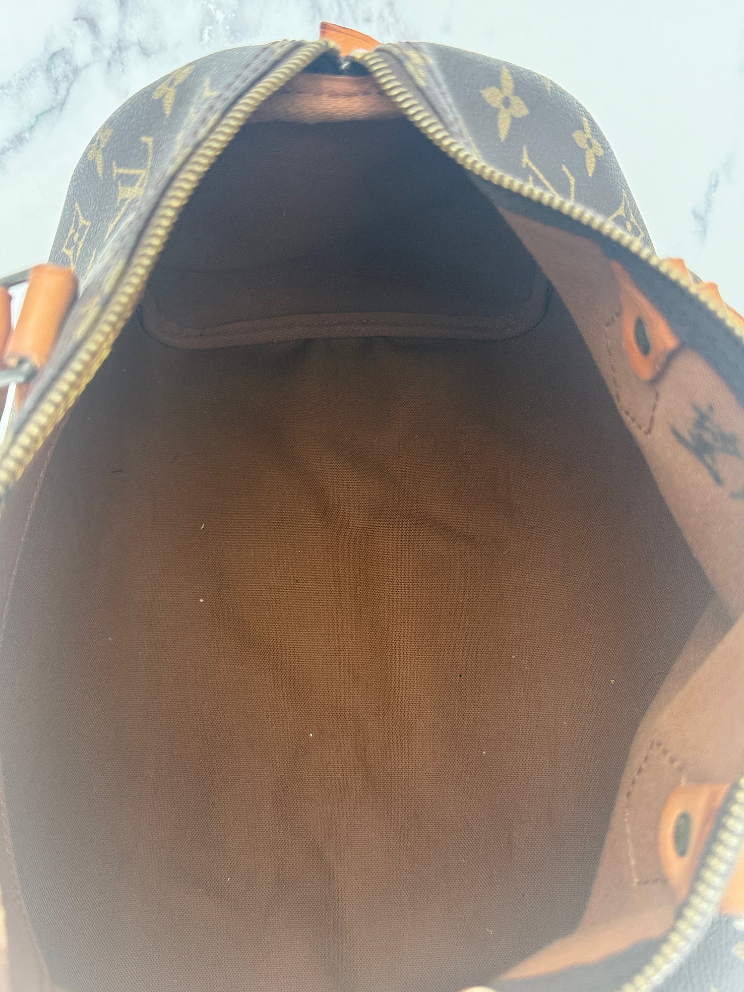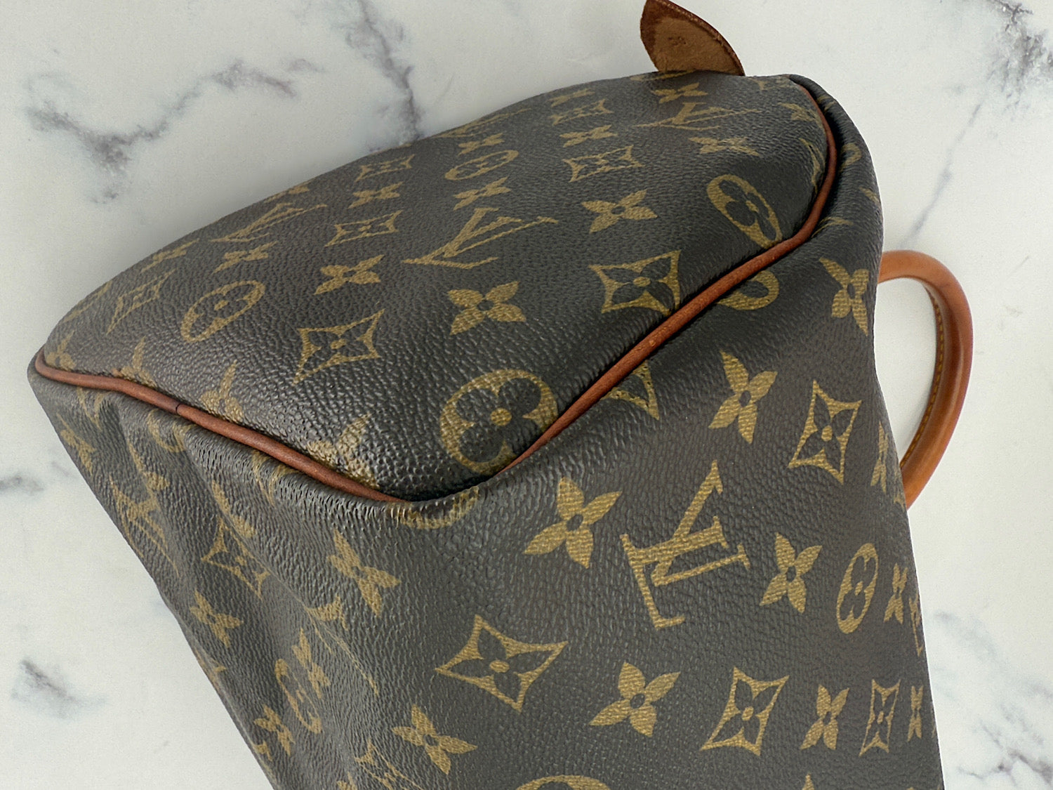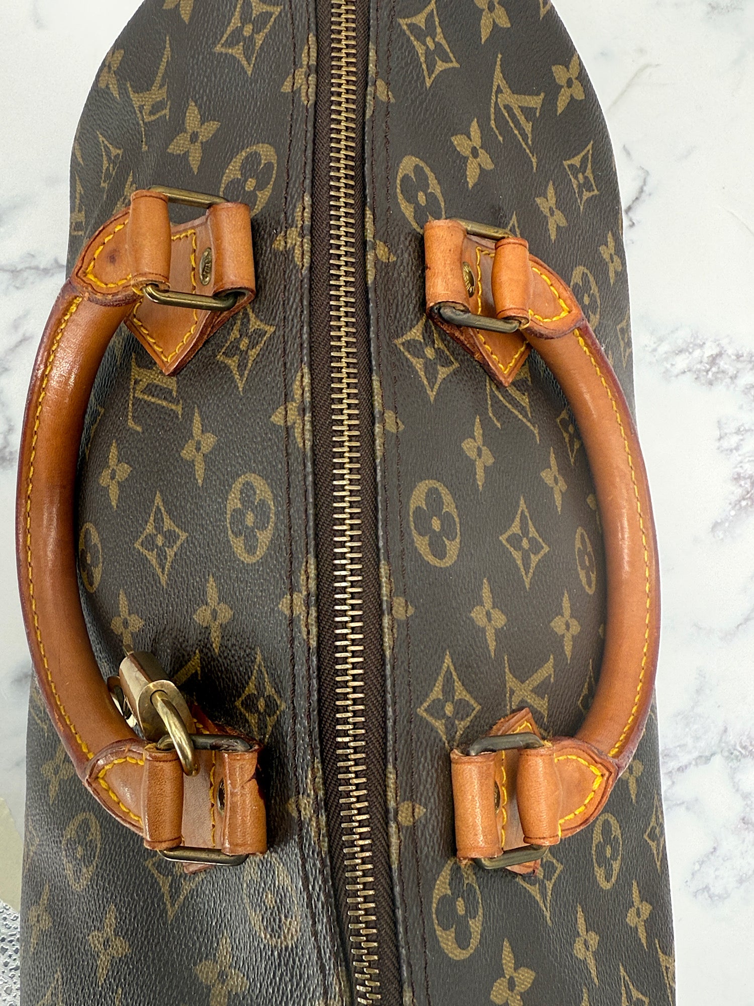 • Outside: very good conditions, the monogram print is still sharp and clear. The vacchetta leather took a really beautiful honey tone.