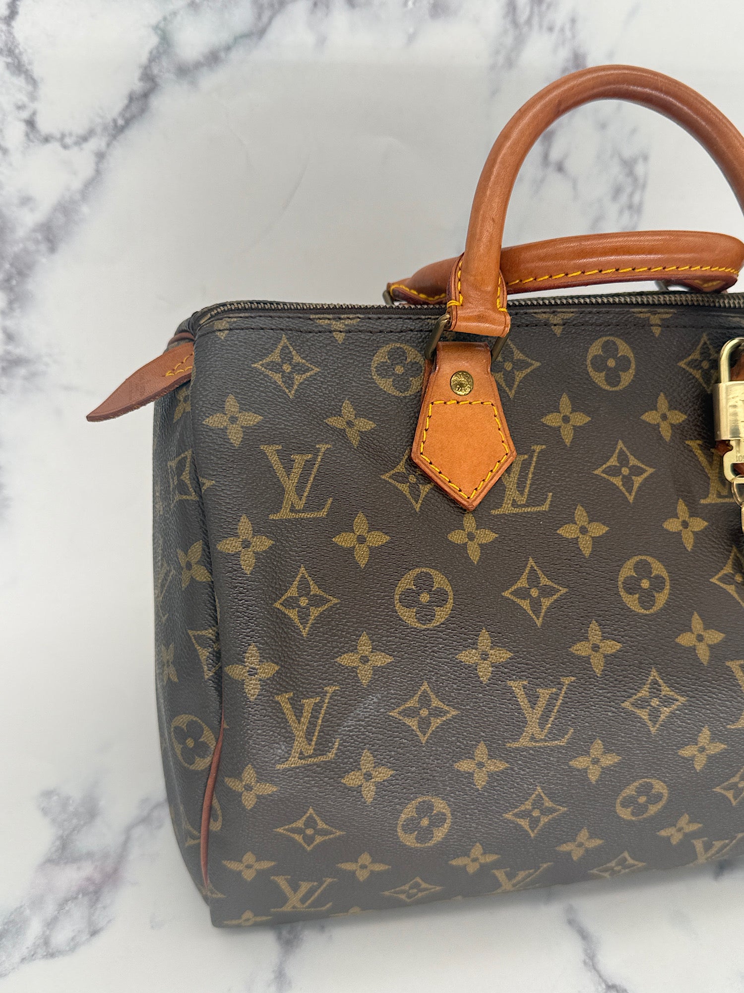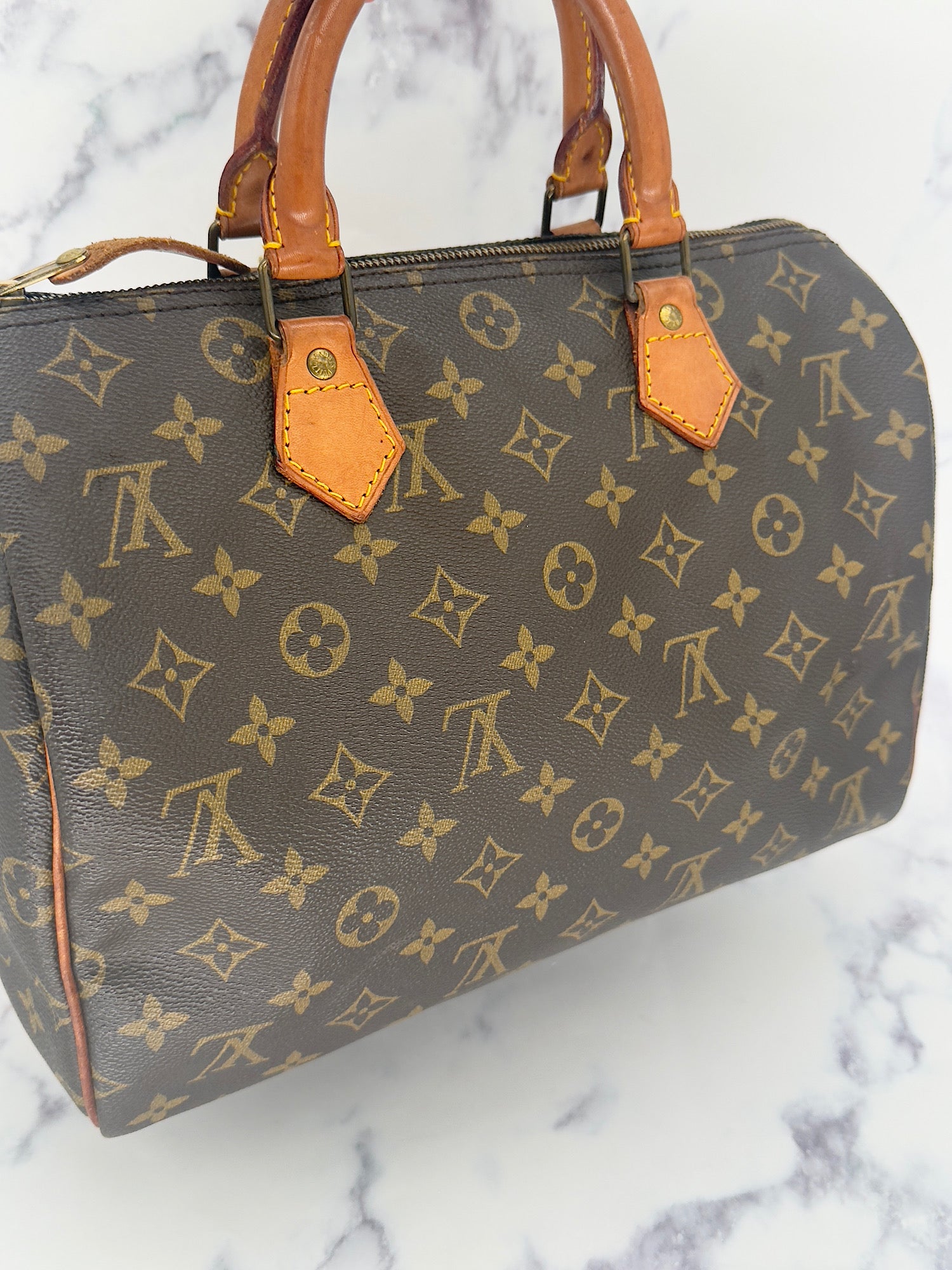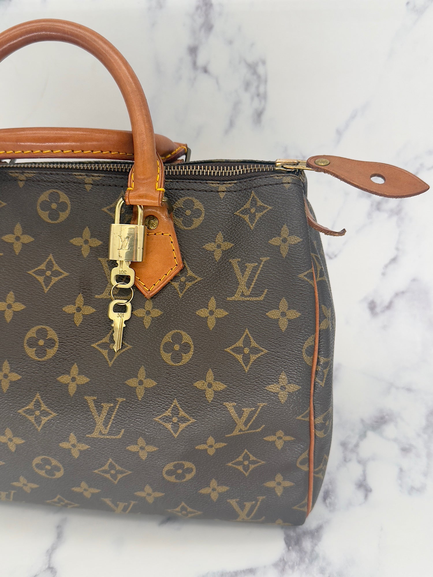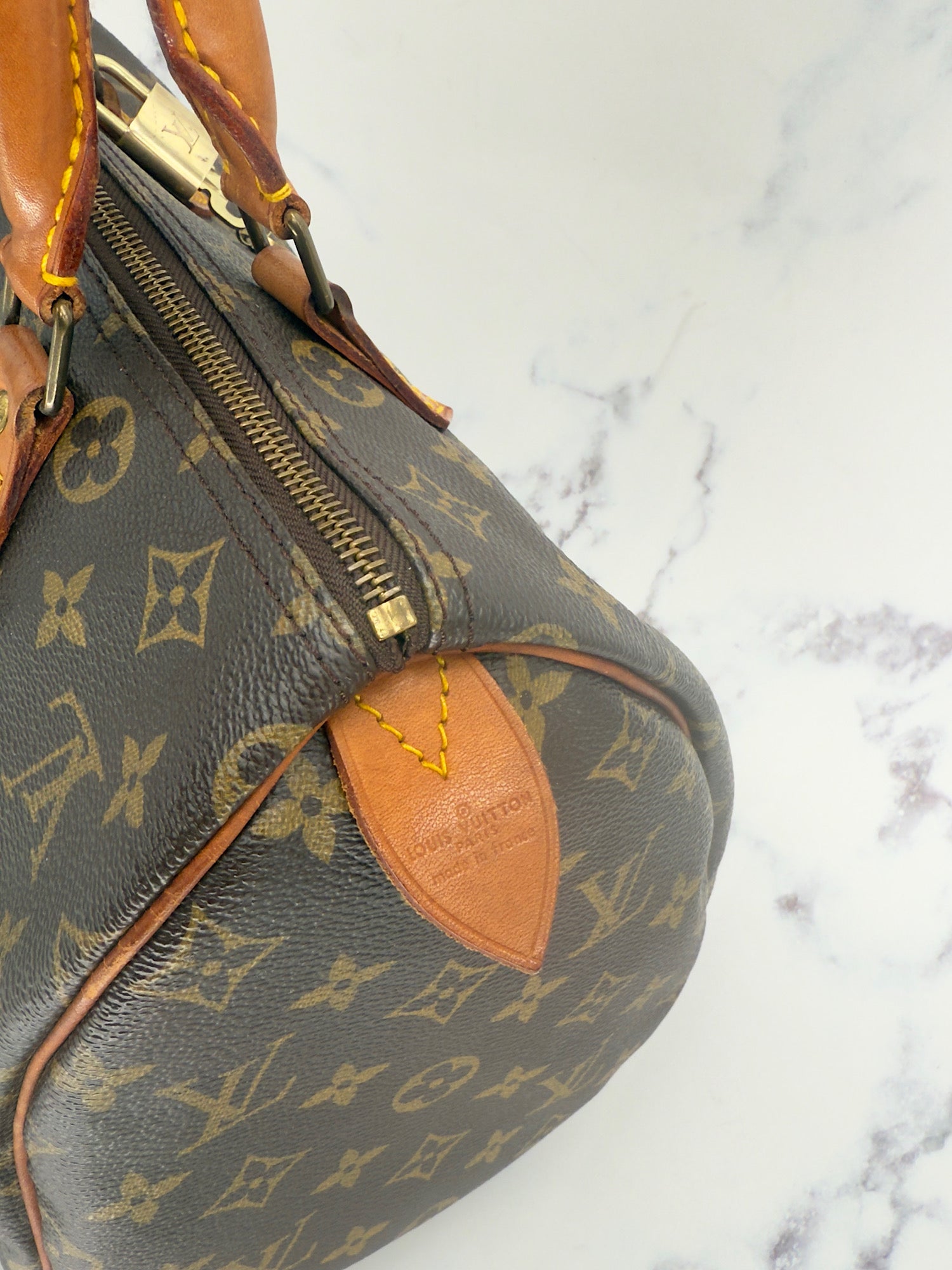 • Outside: very good conditions, the monogram print is still sharp and clear. The vacchetta leather took a really beautiful honey tone.