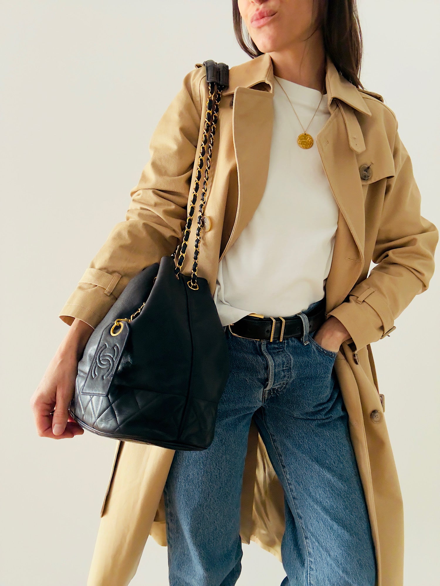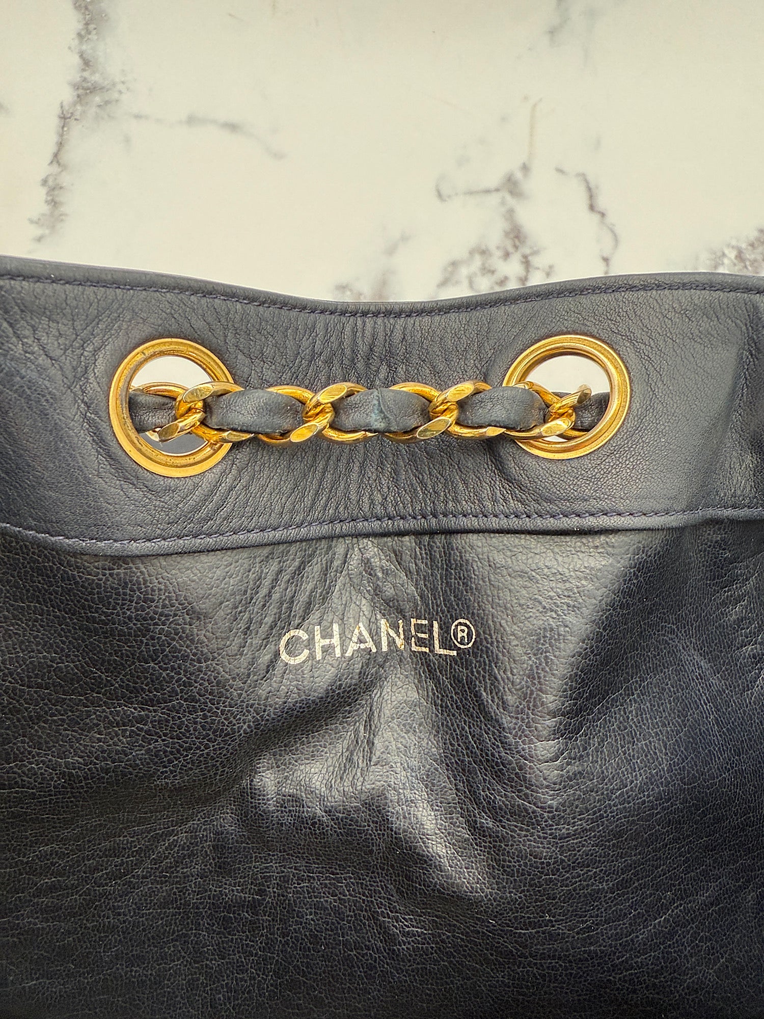 Rare Chanel Gabrielle Bucket Bag in Navy